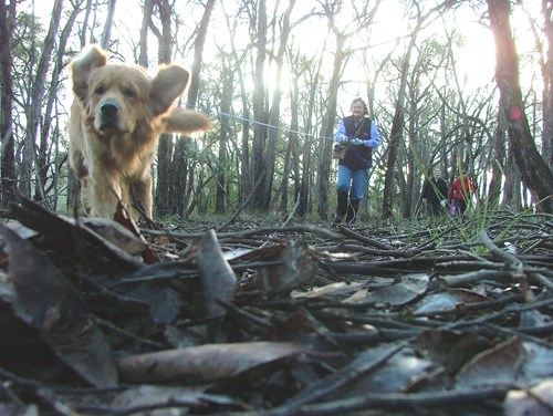 Dogs must wear a tracking harness, and must track at the end of a 10 metre lead, unless topography makes this difficult.